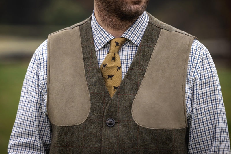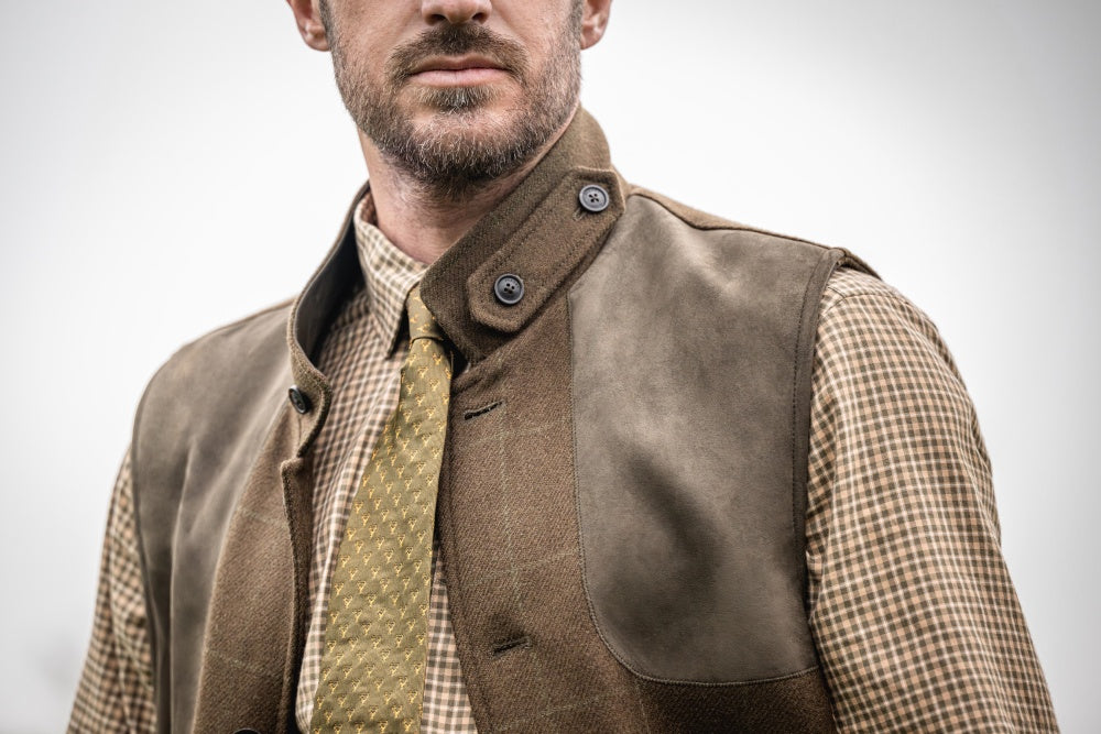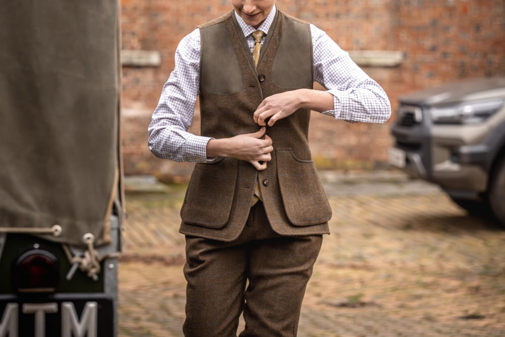 Men's Cashmere Tweed High Collar Sporting Vest in Langshaw