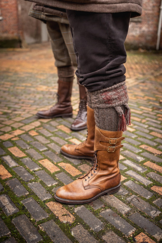 Men's Rough Out Leather With Tweed Padded Collar Commando Boot