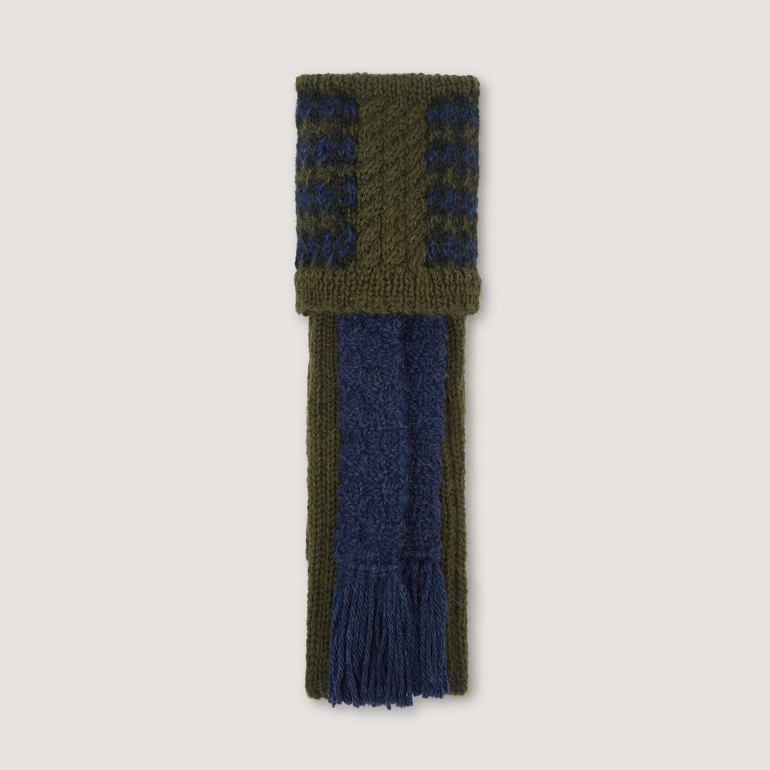 The Hawkers Orkney Cable sock is a beautiful mix of classic country colours with bars of green running through the the natural cuff the design is repeated on the end of the garter.
