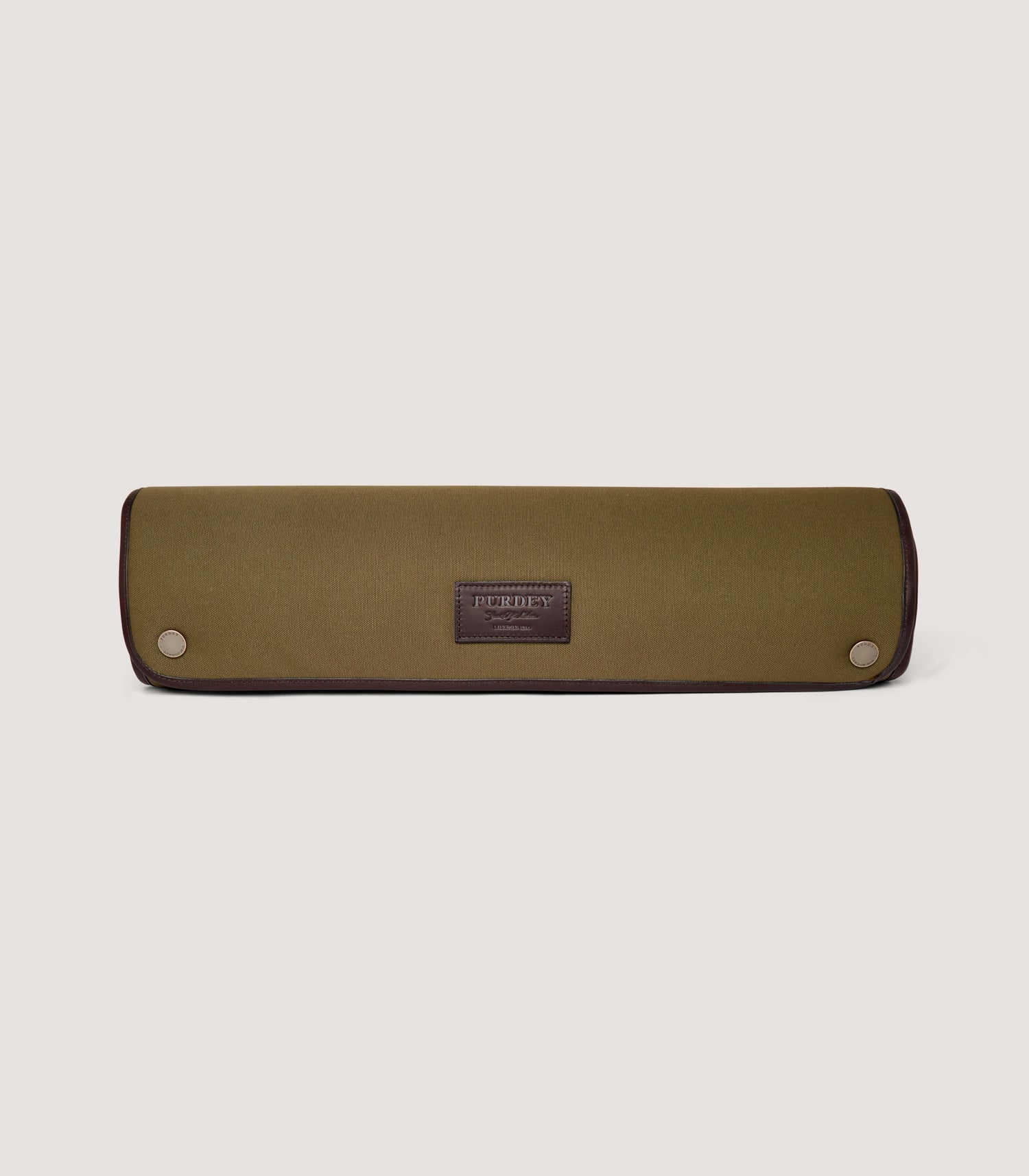 Maintain your pride and joy with care using the Purdey Gun Cleaning Mat. The outer layer is made from 100% canvas while the inner layer is 100% shearling. Designed for convenience, the mat easily rolls up and snaps closed, making it ideal for travel and storage.