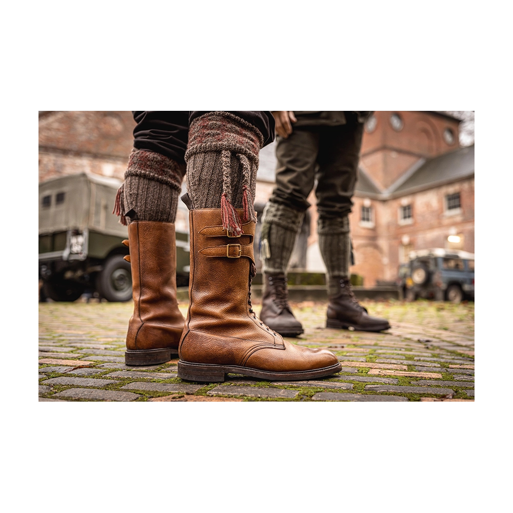Made from 100% sustainably sourced baby Alpaca, our socks are hand knitted and produced by a cottage industry of vastly experienced knitters working from home, with each pair of socks taking up to three weeks to knit. Naturally deodorising and hypoallergenic, baby alpaca is durable and water repellent with exceptional wind resistance qualities. Designed to be worn with traditional breeks, our socks reach the knee and are tied with a garter ensuring they are comfortable and can be worn all day.