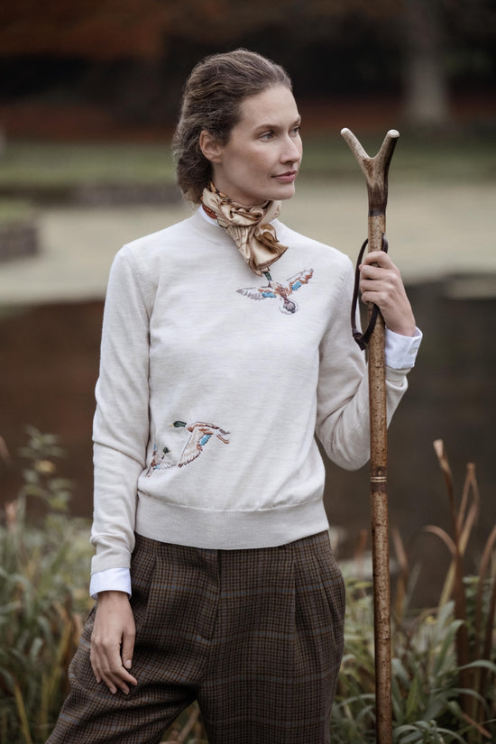 Women's Curzon Birds Round Neck Sweater in Ivory