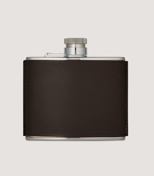 This Leather Flask is made from steel and covered in vegetable tanned leather and fits perfectly into an outside pocket for days spent outdoors. A hinged captive top prevents it from being lost. Capacity - 114ml (4oz). Measures 7.9 cm x 11 cm x 2 cm.