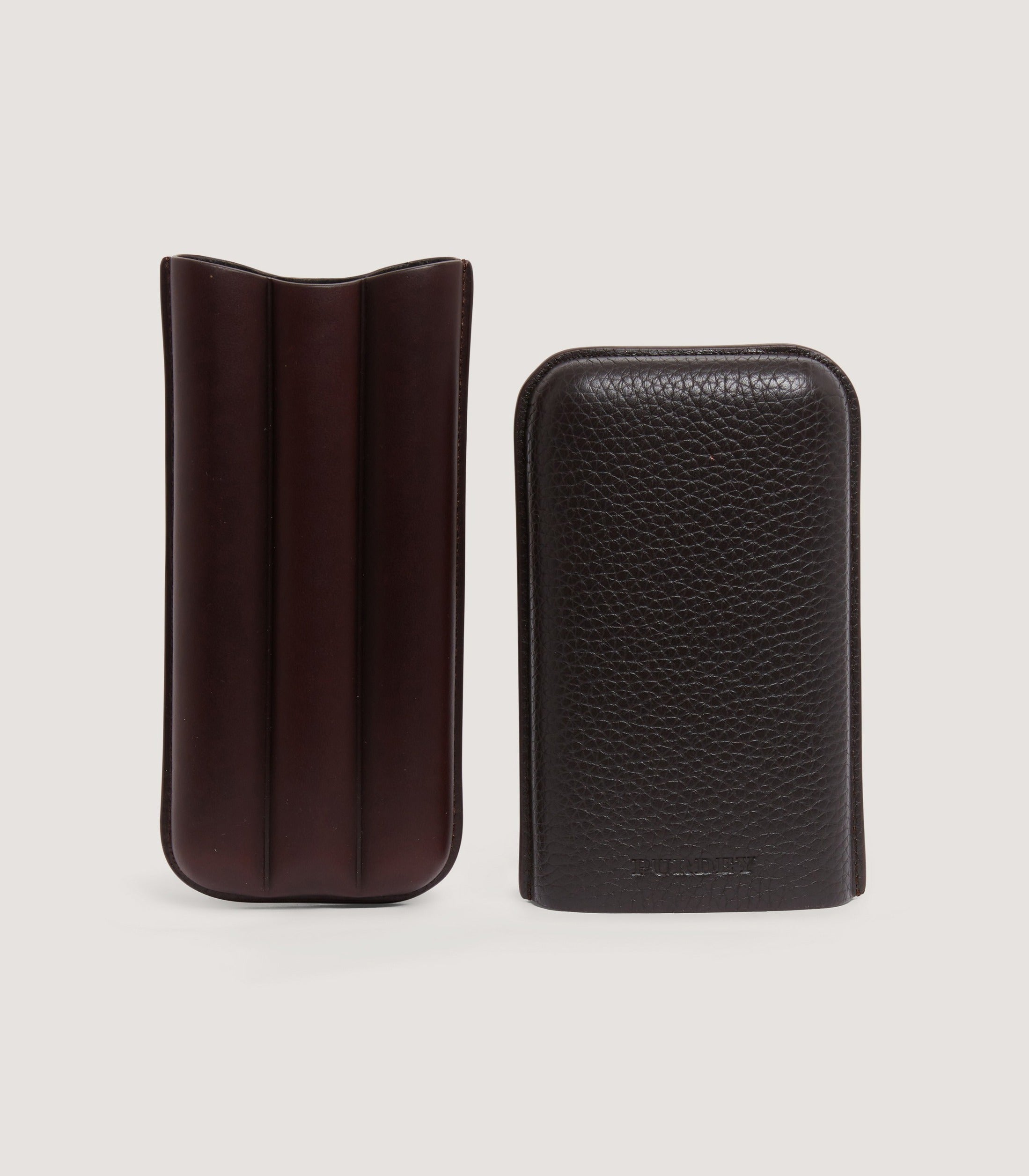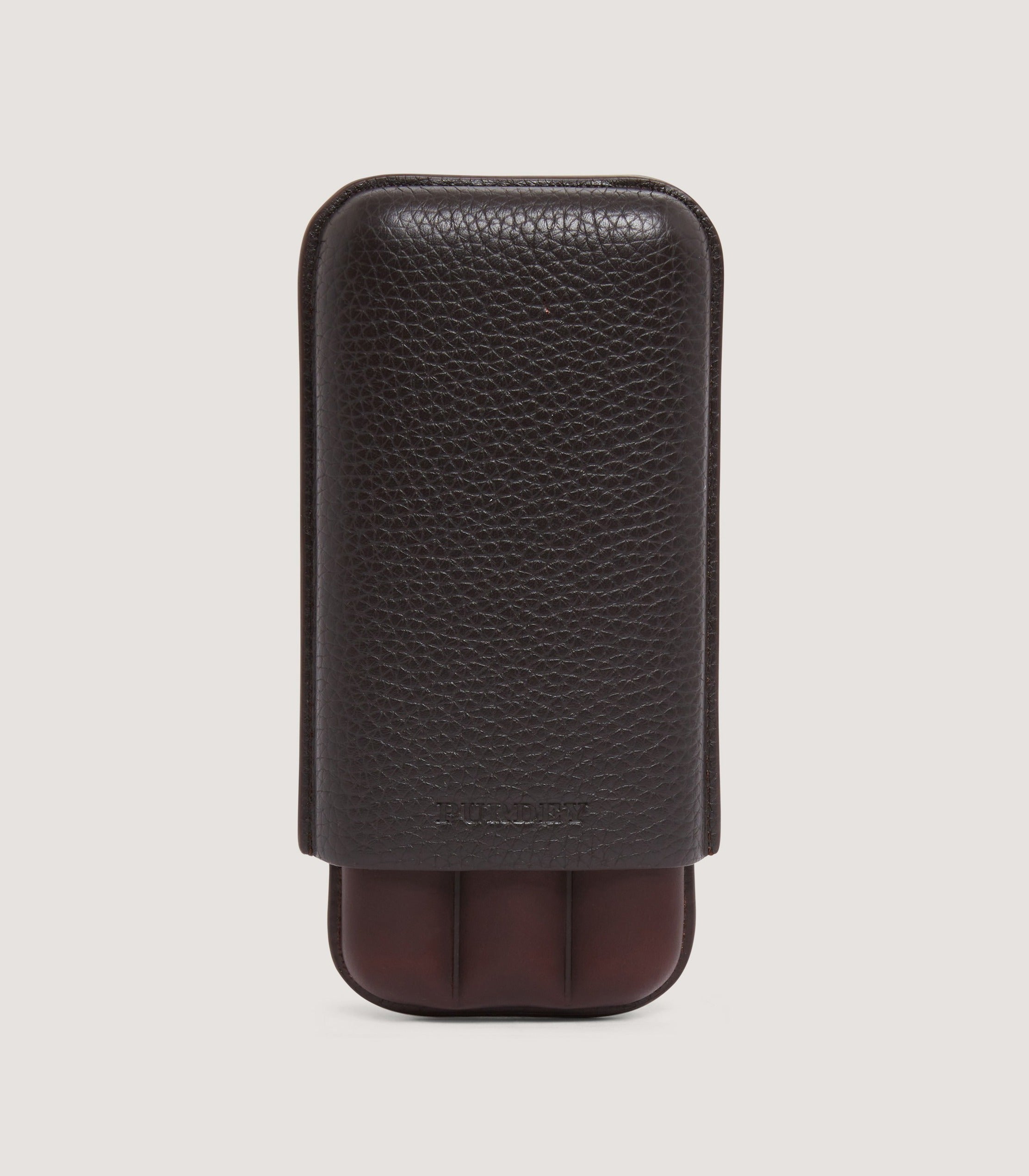 Carry your cigars in style with this 3 Cigar Leather Holder. Made from 100% leather and crafted in Spain, this dark brown holder measures 17cm x 9cm.