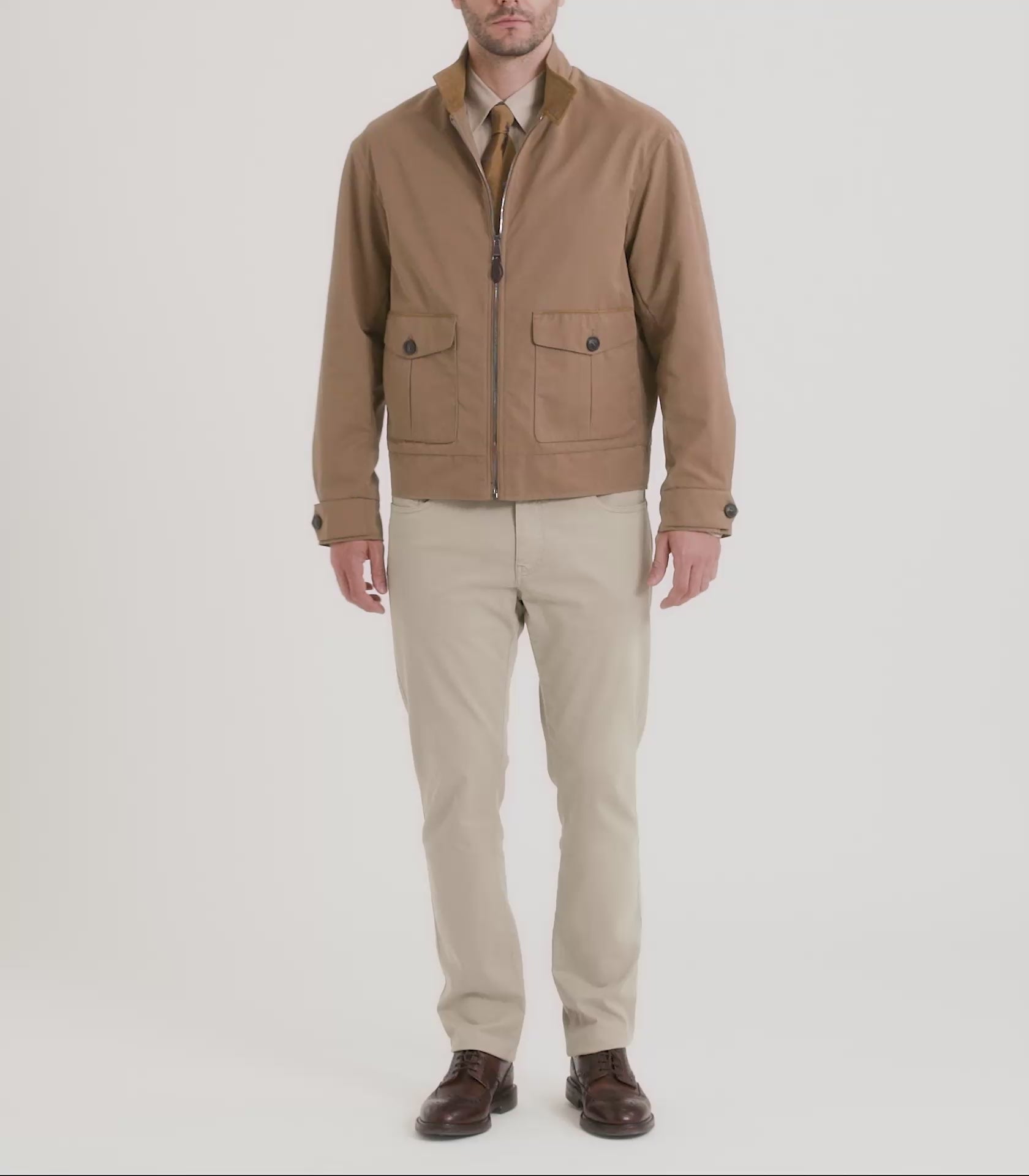 A classic driving coat crafted from soft touch fabrication with water repellence. The Dunfee has a two-way opening front zip with Purdey leather pullers and buttons on collar for full throat latch closure. Pair with leather gloves and dark aviators.