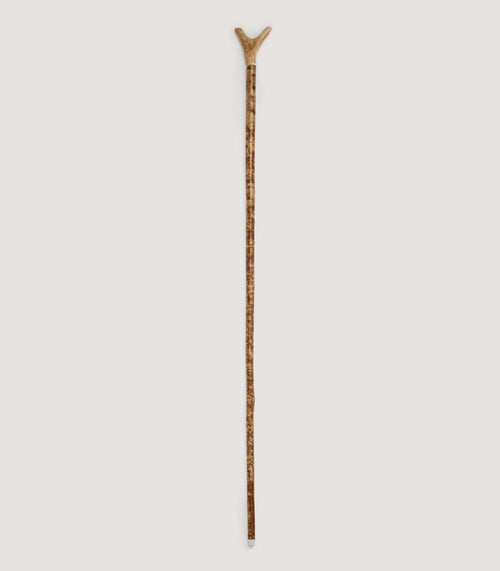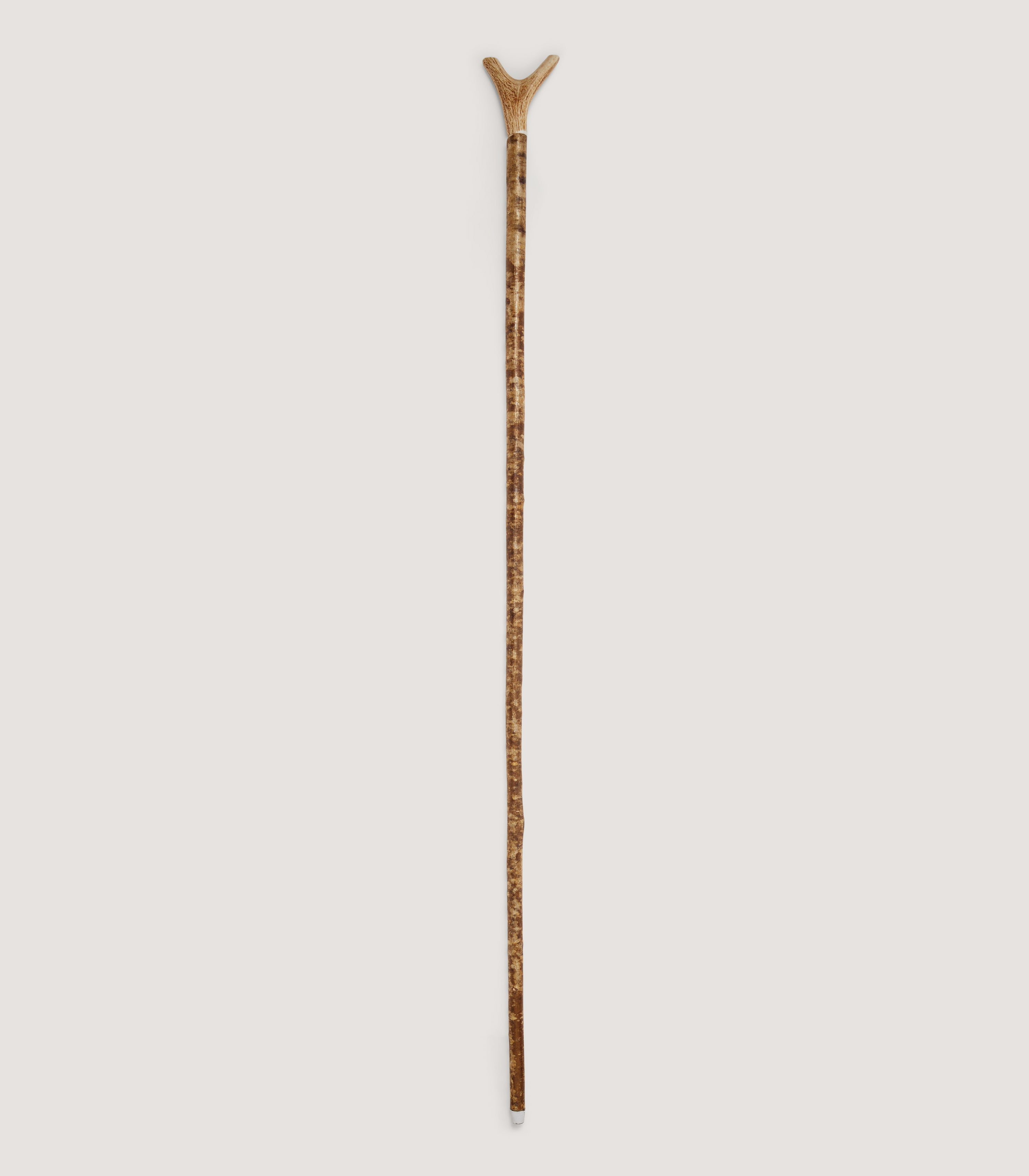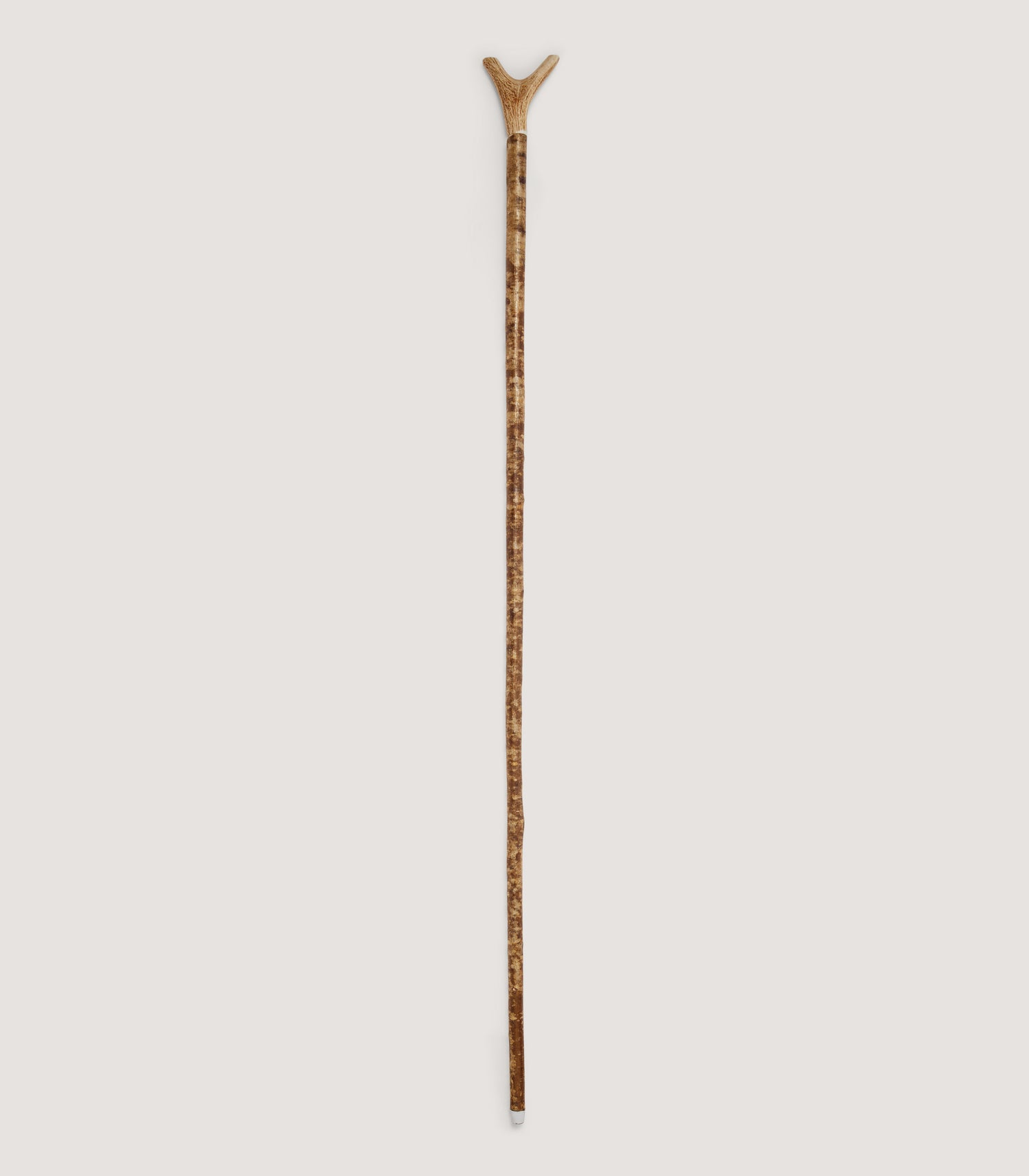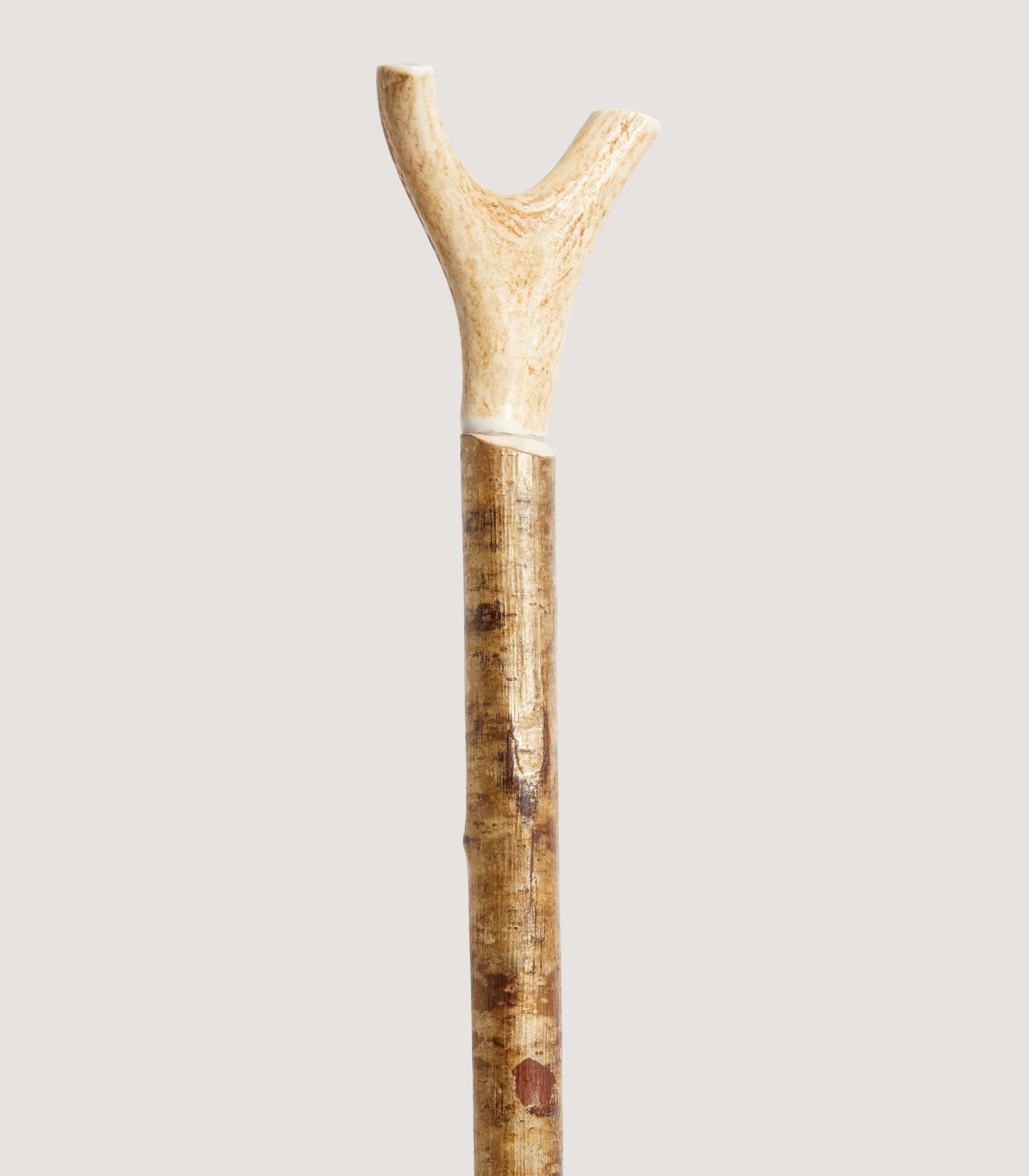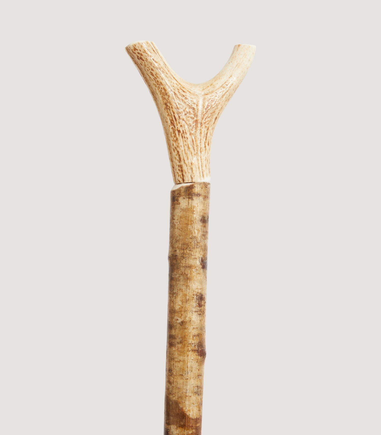 A distinctive hazel-shafted walking stick with stag horn handle.
