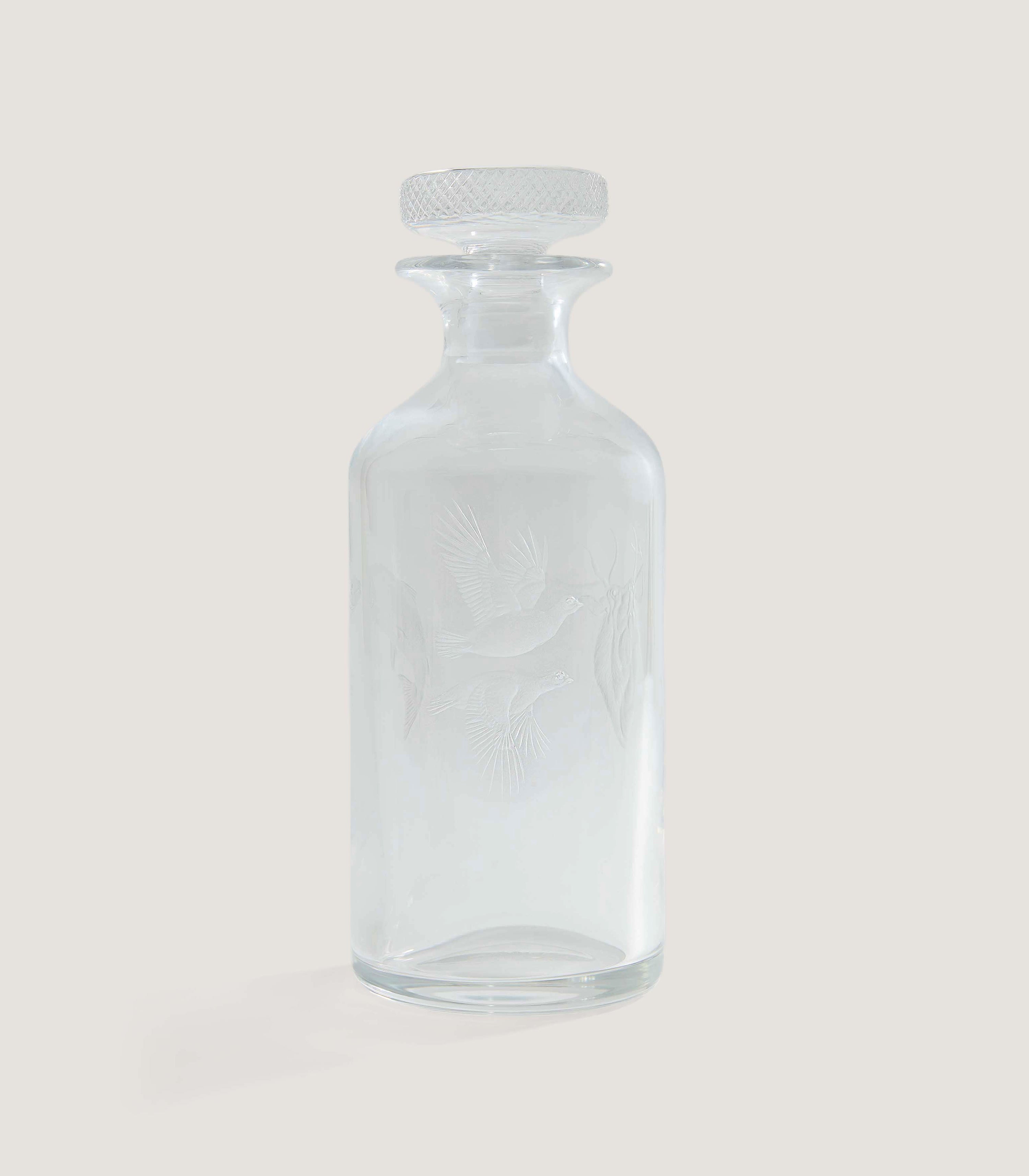 This unique round decanter, made in the UK, depicts all three quarry of the Classic Macnab by using the age old method of copper wheel engraving to bring out each one in stunning 3D detail. They are shown around the decanter so you can always have one directly in view and makes for a stunning centre piece.