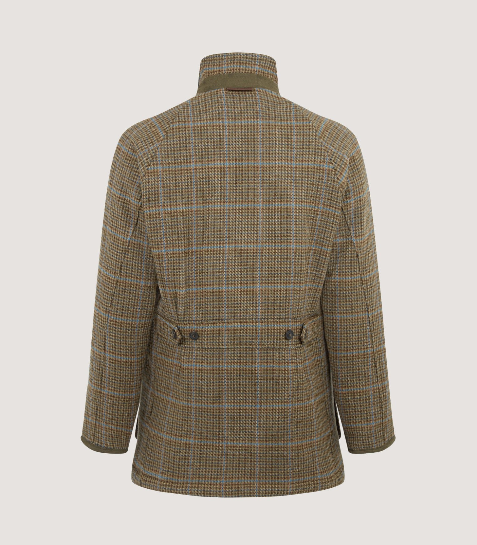 The highlight of our Tom Purdey tweed collection is our classic Field Coat. The Purdey Field Coat is a sophisticated take on a traditional design, crafted in Italy from luxurious 100% Scottish tweed. It's built for warmth and protection with a Sympatex drop liner membrane and HD wool wadding, making it ideal for chilly winter days. The coat features a quilted lining and sleeves, a large internal stow pocket, a zipped security pocket, and practical cartridge pockets. Details include a concealed snap front storm placket, a front zip closure, horn buttons, fleece-lined hand warmer pockets with retainer straps, a leather Purdey embossed tab, a clarino collar stand, and merino knitted inner cuffs. The coat is designed for a relaxed fit.