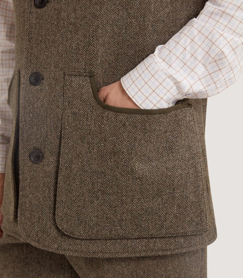 Men's Lightweight Tweed High Collar Vest in Acorn