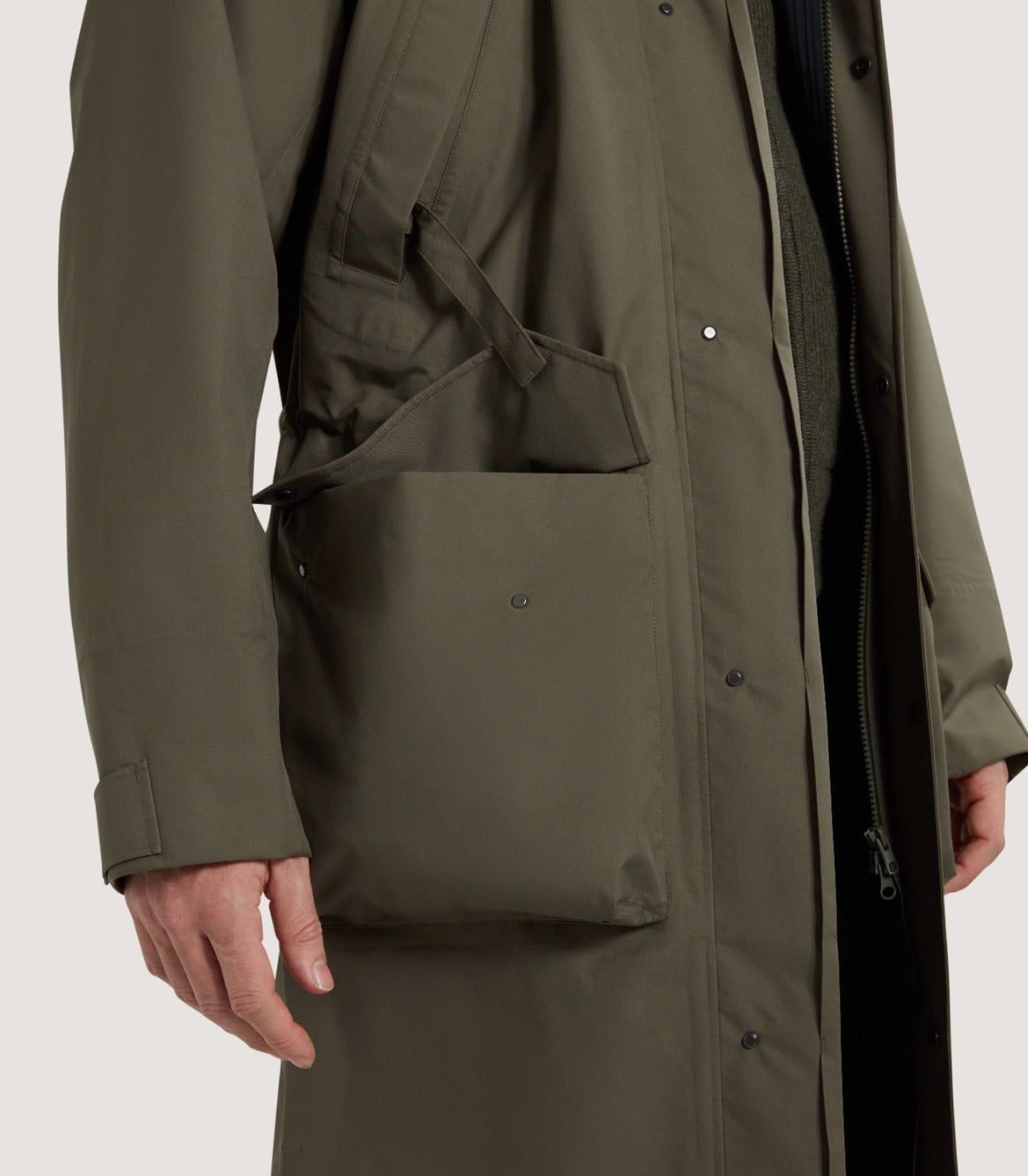 Building upon the legacy of the iconic Vatersay cape, we introduce a significantly upgraded version, now available in the rich and earthy Drab colour with brown hues.