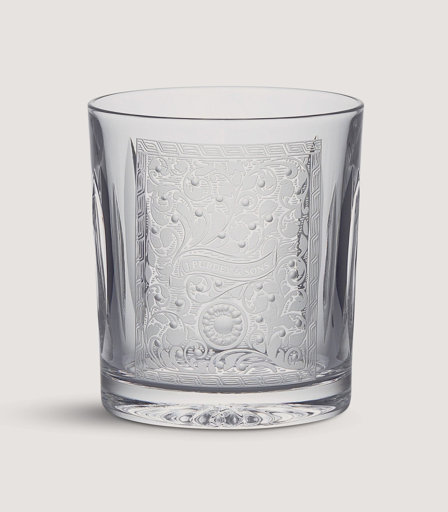 A perfectly proportioned crystal whiskey tumbler with traditional style scroll engraving on the front. A rare piece created for Purdey by one of the few remaining copper wheel engravers. Pair it with the matching Crystal Decanter. 9.2cm x 8.3cm. Hand-crafted in the UK.