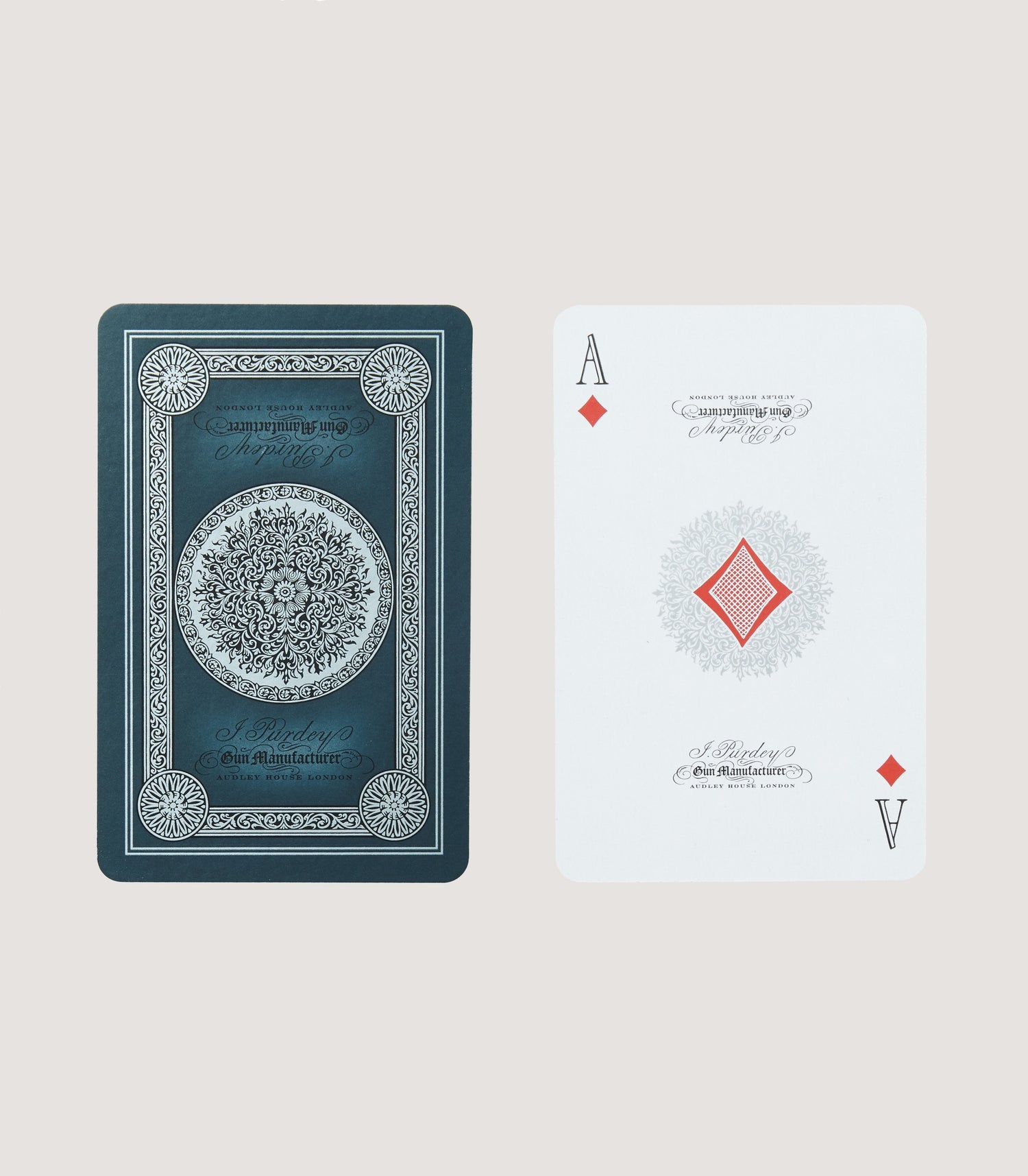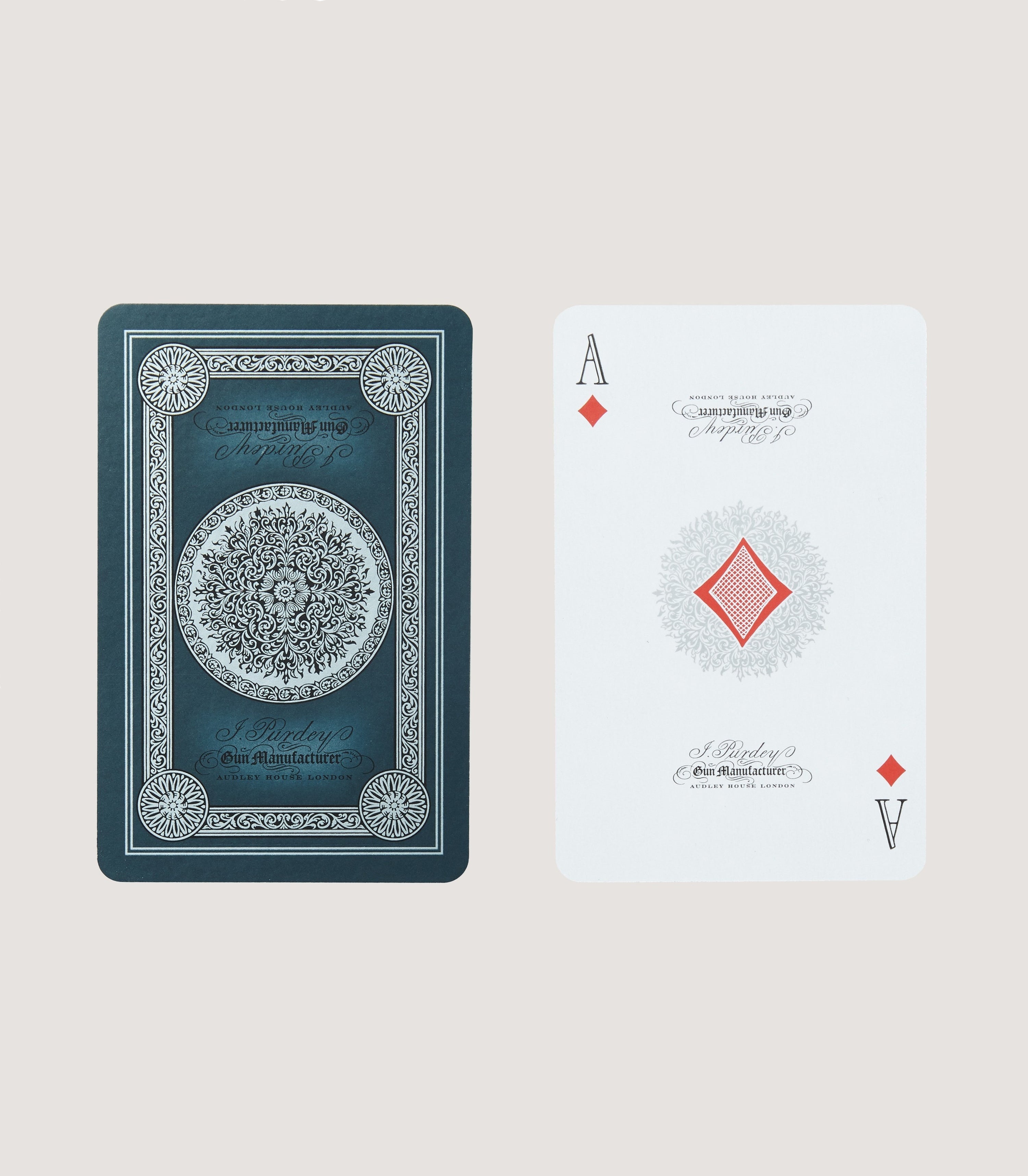 A smart card player always carries his, or her, own cards. This pack features hand drawn Purdey engravings. The royal cards are jacks, queens and kings holding pieces from the Purdey archive and each royal has its own pattern. The cards are bridge size and made from heavyweight board with a silk laminate finish.
