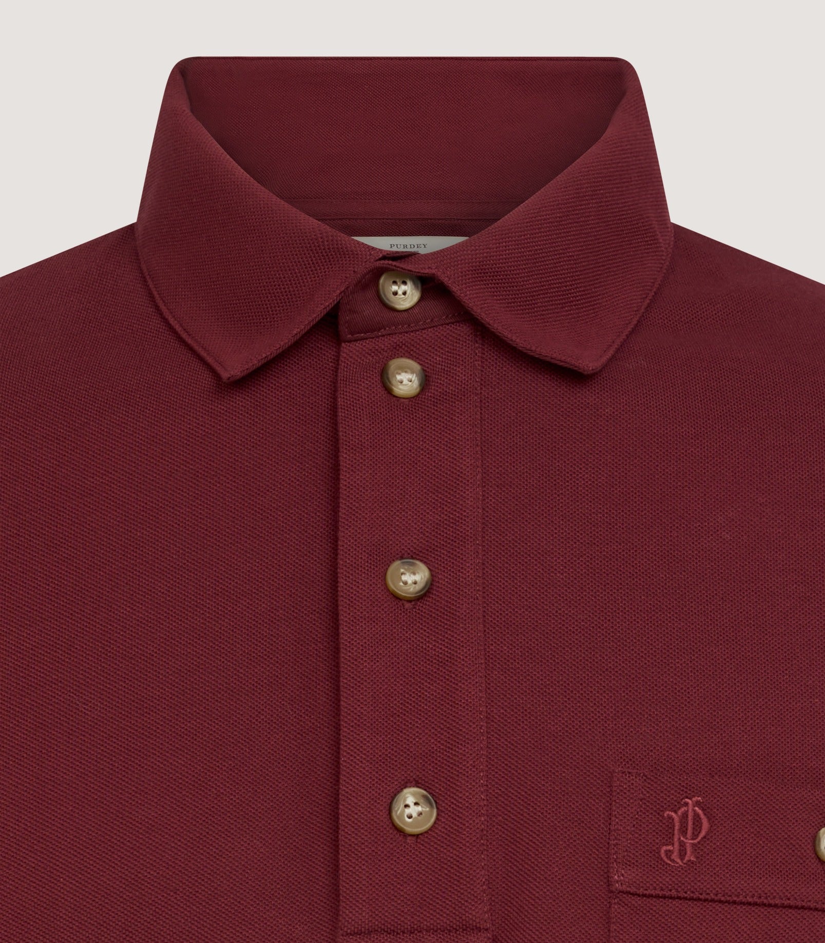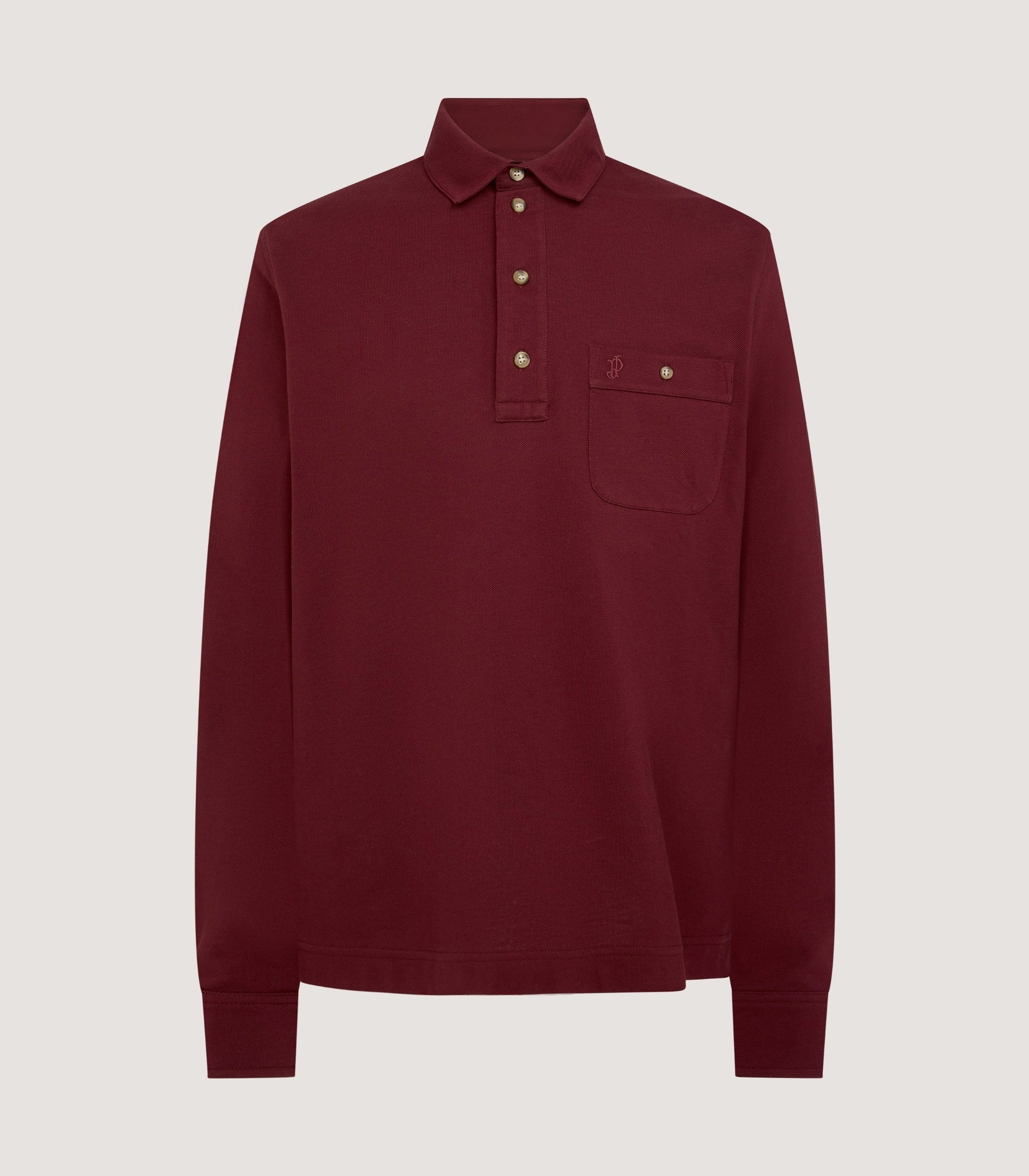 A classic long sleeve cotton polo shirt in Audley Red with a buttoned chest pocket and tonal JP monogram branding.