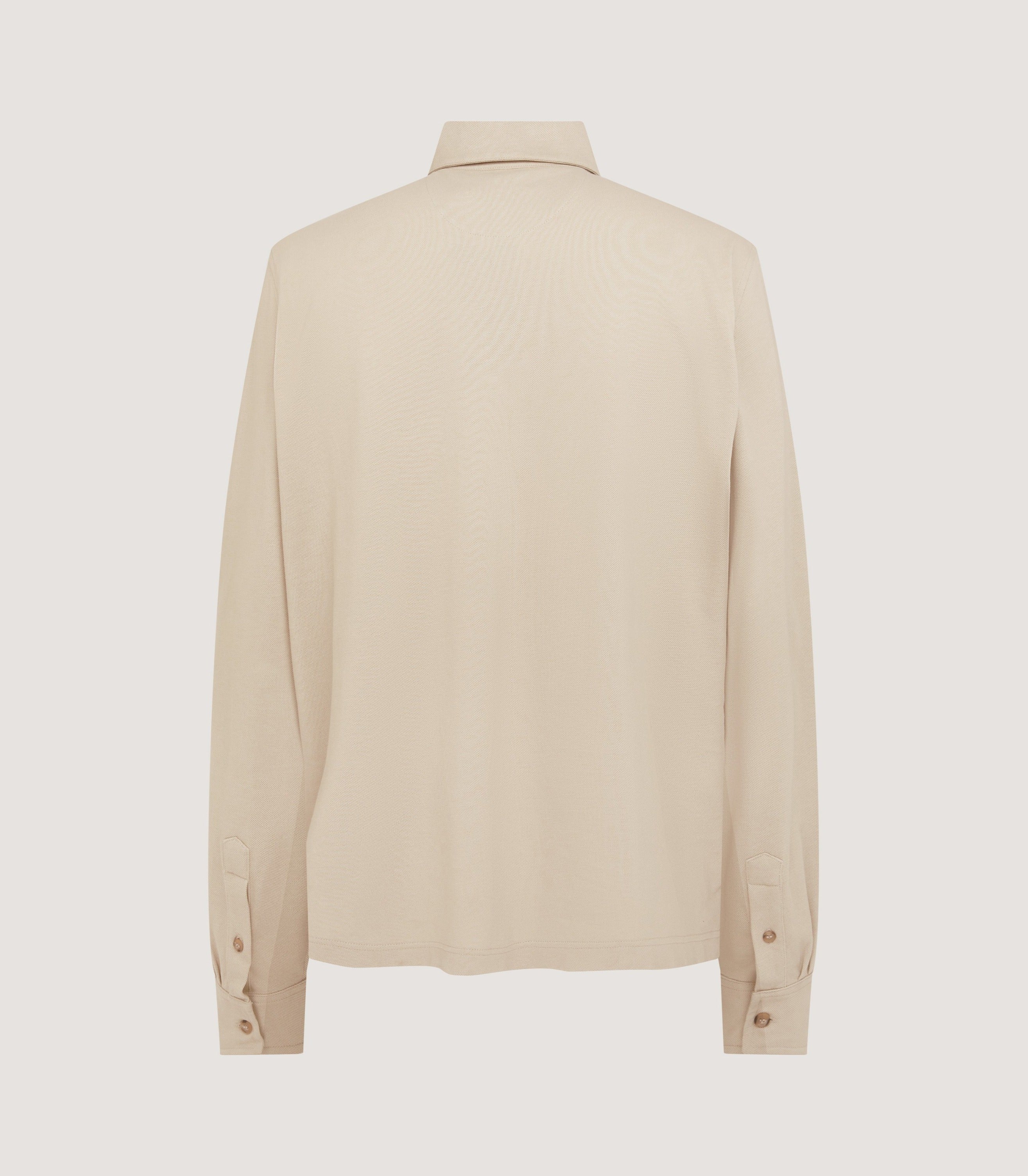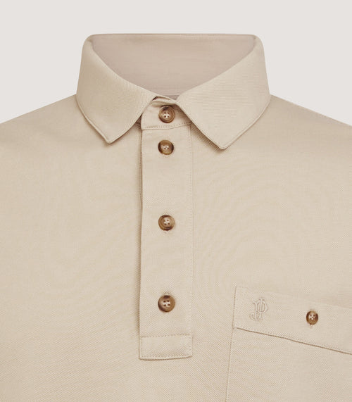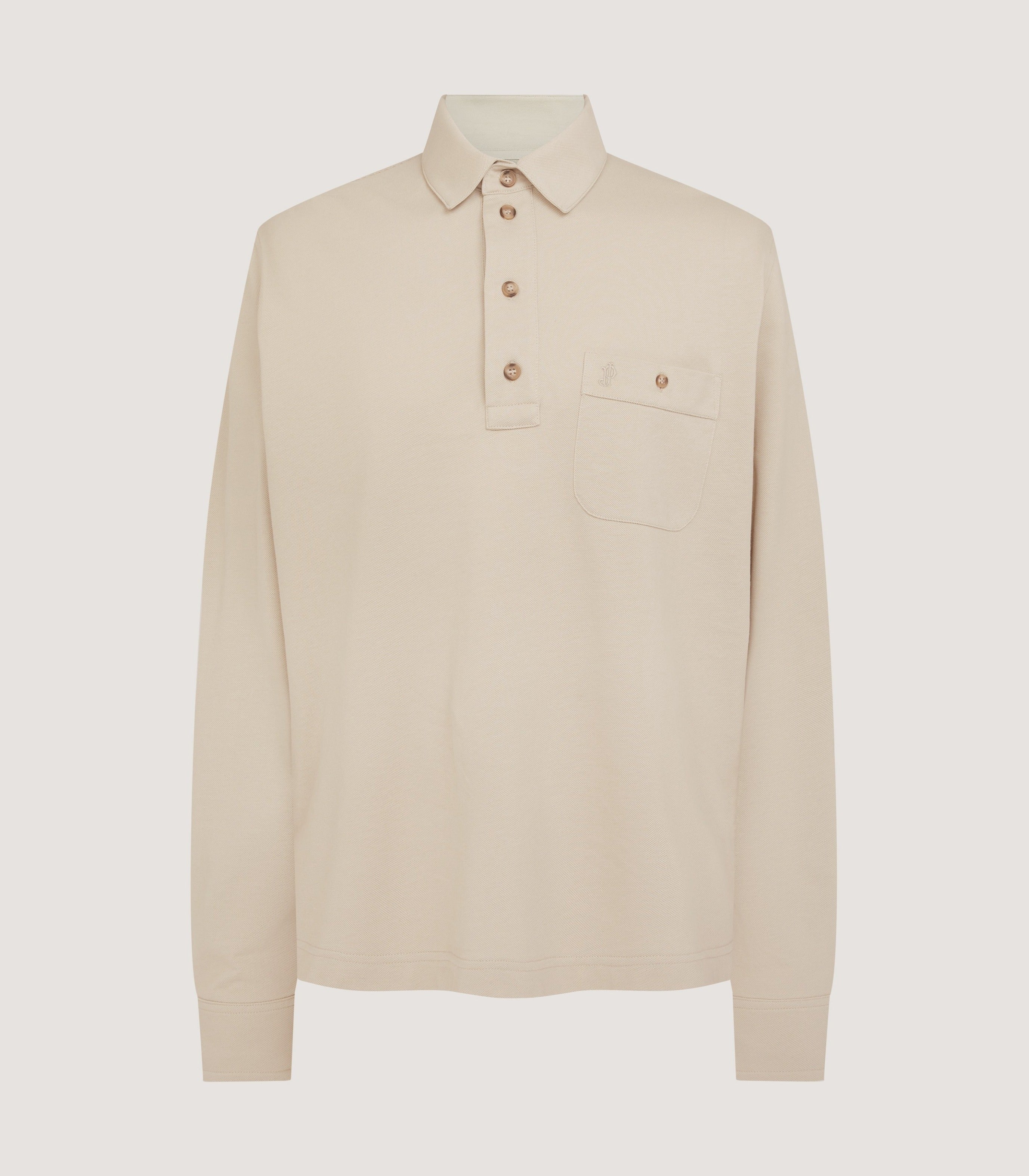 A classic long sleeve cotton polo shirt in Stone with a buttoned chest pocket and tonal JP monogram branding.