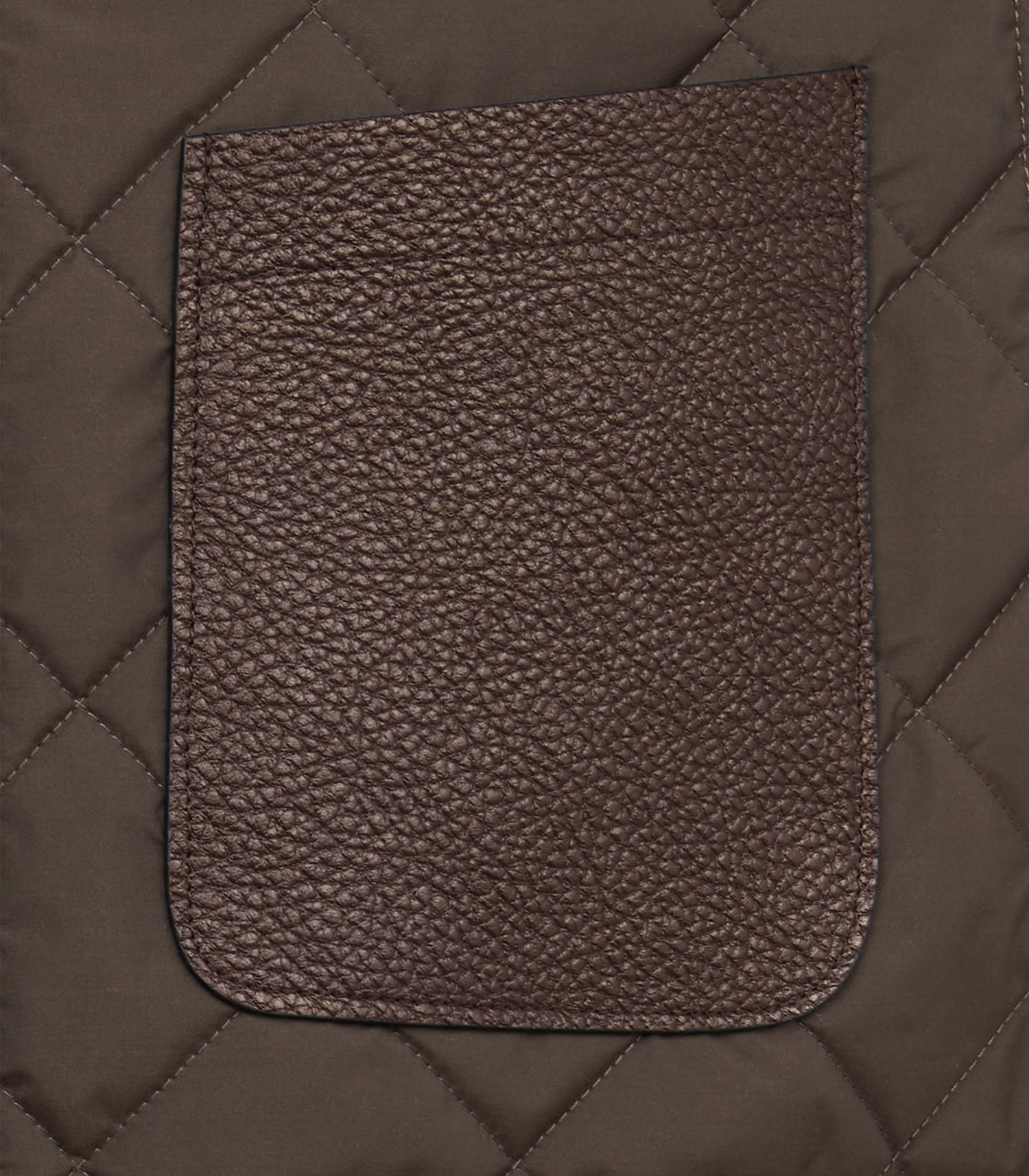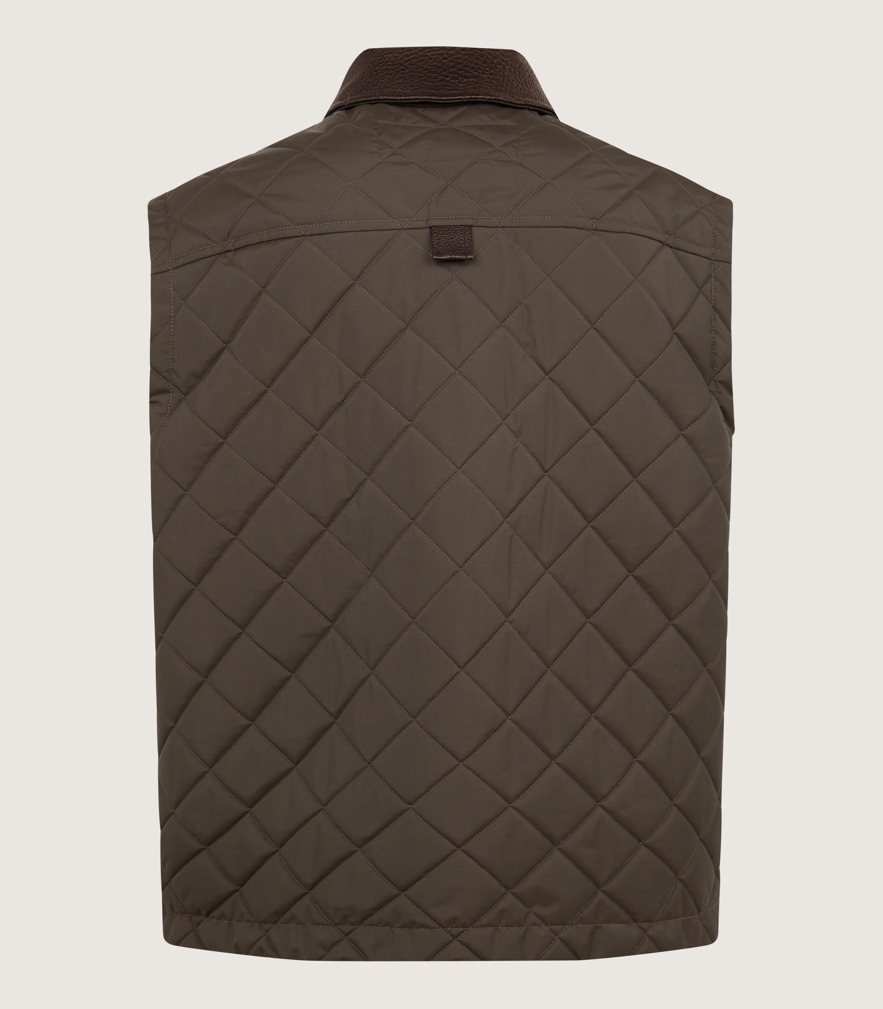 The Men's Padded Barn Gilet is made from a silk fabric mix, with a windproof laminated back. It features a large diamond effect quilting achieved through UK-sourced HD wool.