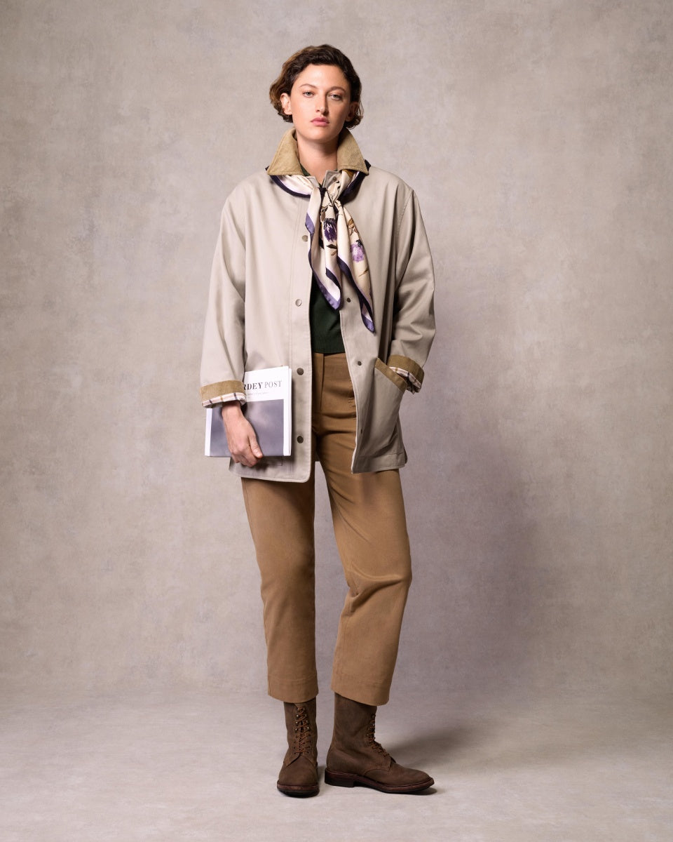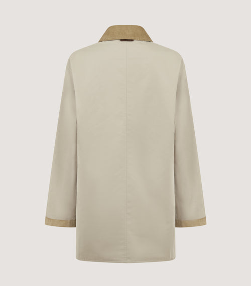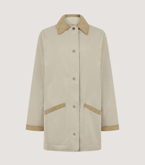 The Vita Clipper Coat is an oversized jacket perfect for long walks through the changing seasons thanks to it's water repellent fabric. Corduroy trim on the collar, pockets and cuff gives contrast while snap closures at the side provides breathability.
