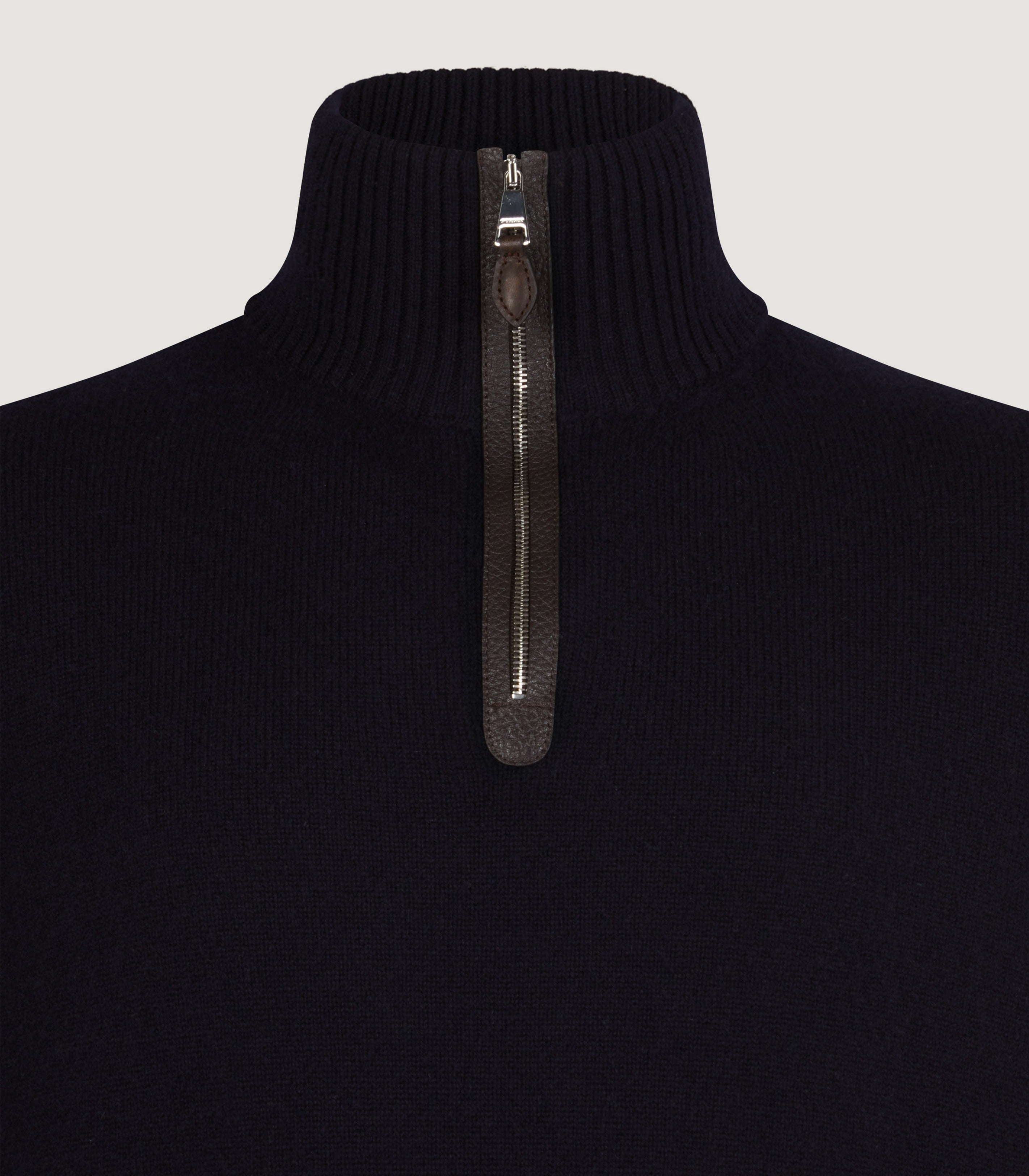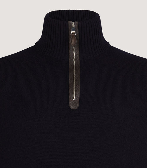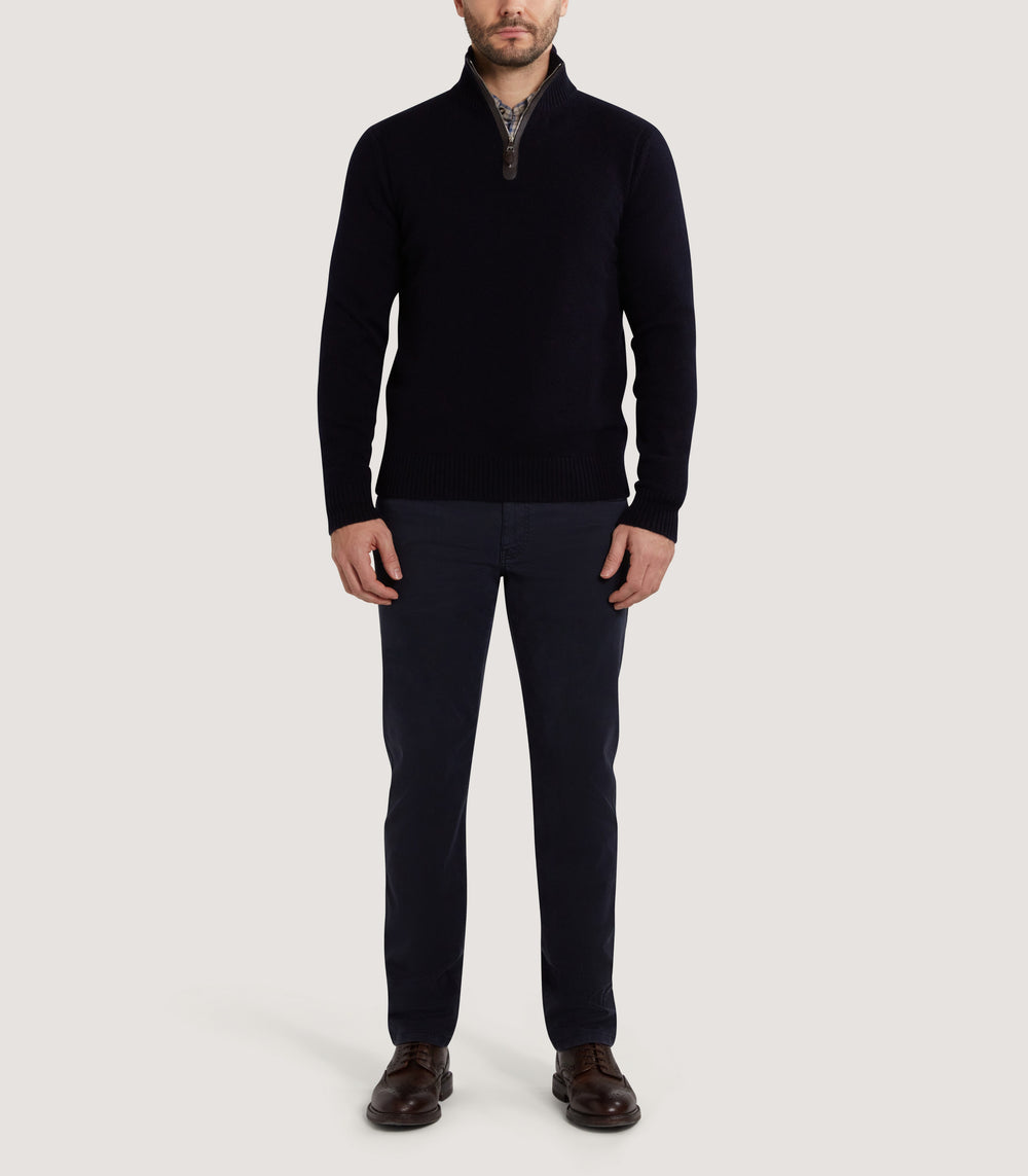 Men's Cashmere Quarter Zip Sweater in Midnight