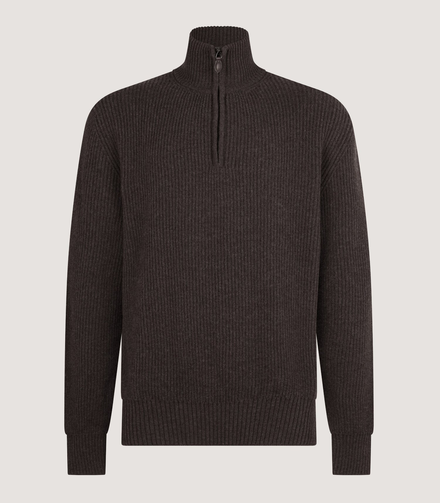 Men's Clifford Wool Cashmere Ribbed Quarter Zip Sweater in PeppercornMen's Clifford Wool Cashmere Ribbed Quarter Zip Sweater in Peppercorn