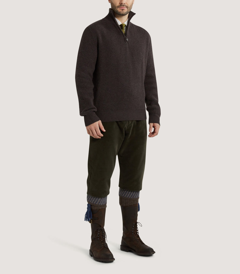 Men's Clifford Wool Cashmere Ribbed Quarter Zip Sweater in Peppercorn