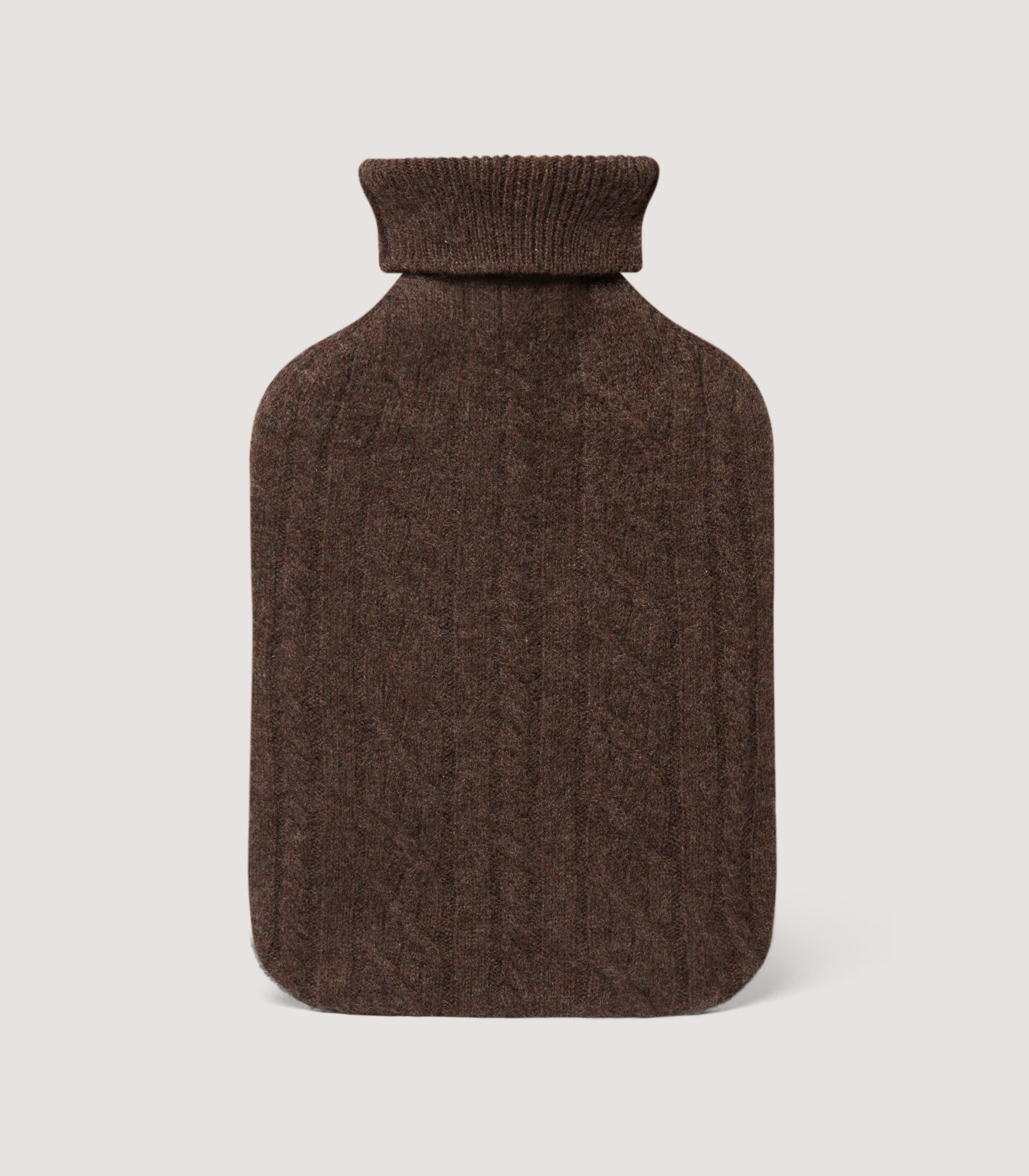 Our Cable Knit Hot Water Bottle in Walnut is a luxurious and cosy hot water bottle, perfect for a cold night. It is made in Italy from 100% cashmere, giving it a soft and plush feel. The hot water bottle outer should be dry cleaned only to maintain its quality. The dimensions are 39cm x 21cm holding 2L of water.
