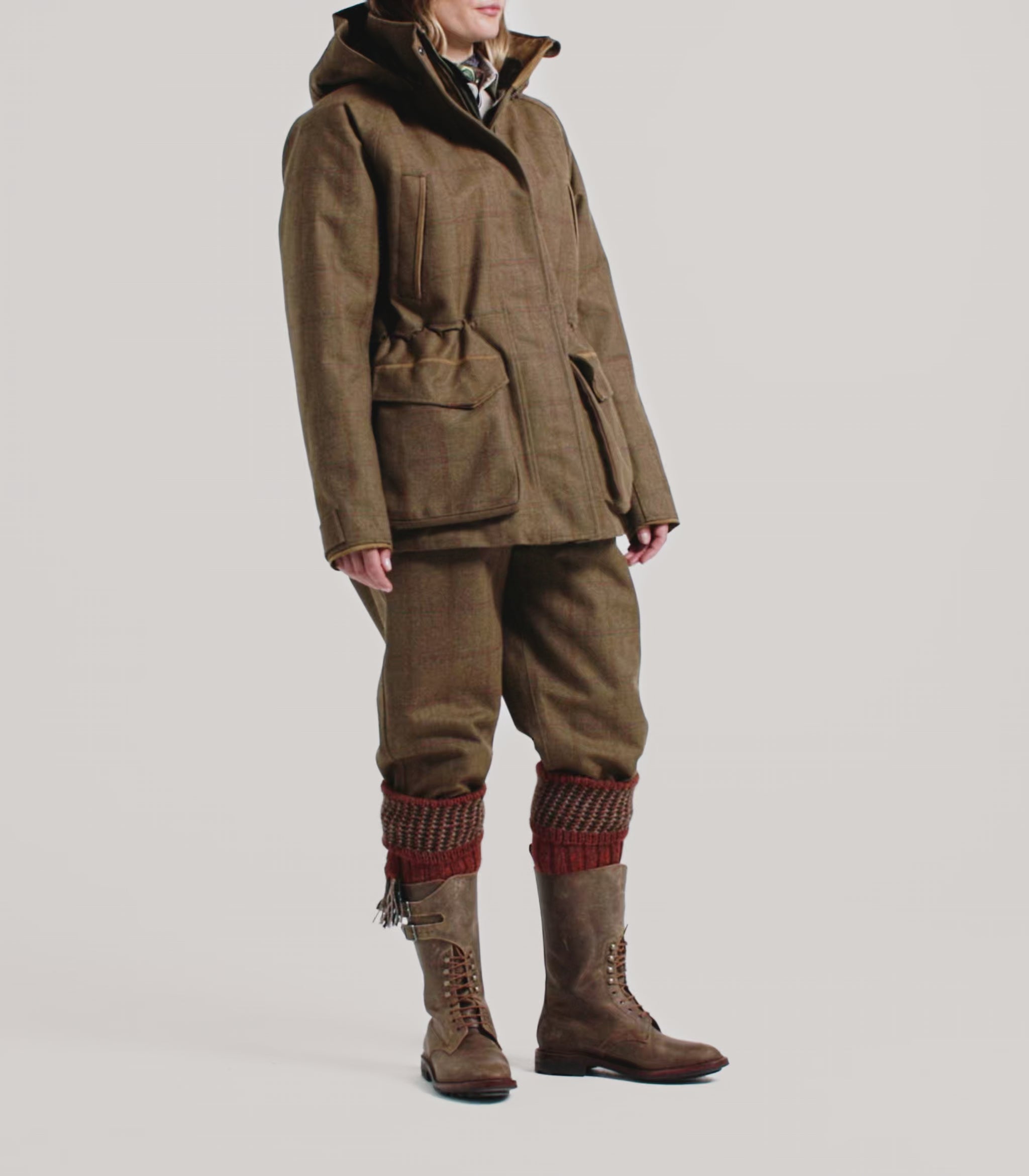 . Relaxed fit for comfort during a day out in the field. Adjustable hem and waist channel on outer shell. Long in the sleeve for shooting. . Internal padded jacket, finishes at high hip . Model is wearing a UK 10 . Model measures: height 5'7"/ 171.5cm, bust 33.5"/ 85cm, waist 26.6"/67.5cm, high hip 33.1"/ 84cm